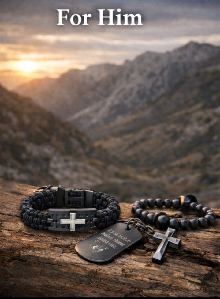 Afri Aura-4pcs Minimalist Cross Bracelet, Necklace, and Earring Set